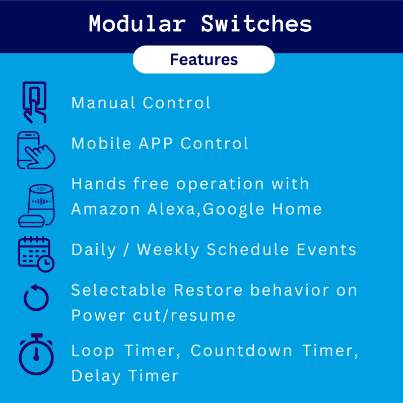 - [ Schedules ] Weekly and Daily Scheduling Facility allows you to turn On/Off your appliance automatically at scheduled time.