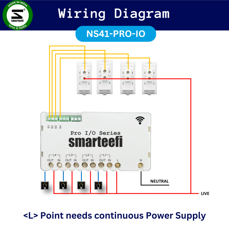 4 Node 6A Retrofit Smart Switch, supports INVERTER + MAINS together with separate IO channels (PRO-IO-SERIES)